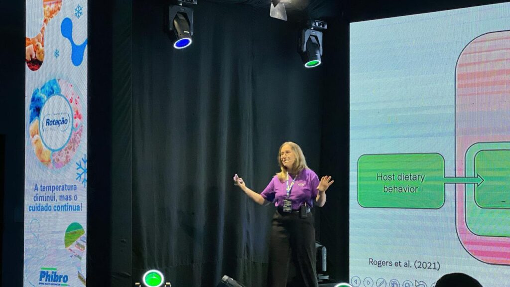 Outro ponto abordado foi a comunicação entre o intestino e outros sistemas do organismo, como o nervoso, respiratório e ósseo. A pesquisadora explicou que citocinas pró-inflamatórias originadas no intestino impactam o comportamento alimentar, o metabolismo hepático e até a densidade óssea. “A inflamação intestinal ativa osteoclastos, que são células do sistema imune, provocando reabsorção óssea e perdas de desempenho”, afirmou, relacionando os efeitos indiretos da saúde intestinal com a produtividade.