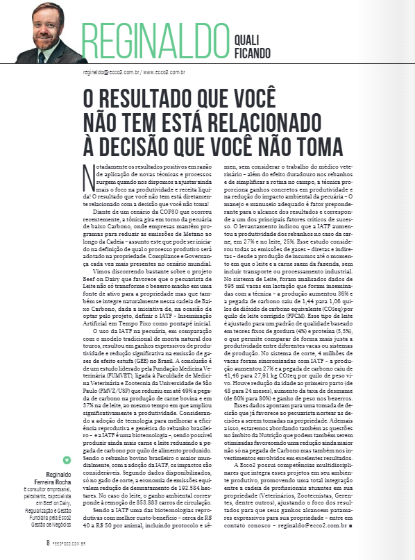 Vimos discorrendo bastante sobre o projeto Beef on Dairy que favorece que o pecuarista de Leite não só transforme o bezerro macho em uma fonte de ativo para a propriedade mas que também se integre naturalmente nessa cadeia de Baixo Carbono, dada a iniciativa de, na ocasião de optar pelo projeto, definir o IATF – Inseminação Artificial em Tempo Fixo como pontapé inicial.