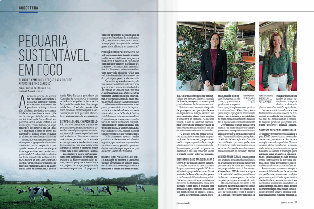 Promovido em um momento decisivo para a agropecuária brasileira, o encontro buscou responder a uma questão essencial: como escalar práticas regenerativas sem perder competitividade? O debate foi conduzido por Keila Prado Costa, editora da KPMO e autora do livro Alimentando o Mundo, e por Renata Fernandes, gerente de Sustentabilidade da Elanco Brasil. Entre os convidados, a presença de Fábio Barbosa, presidente do Conselho da Natura & Co e vencedor do Prêmio Campeões da Terra (PNUMA), e de Fernanda Hoe, diretora-geral da Elanco Brasil, deu peso às reflexões e indicou caminhos para a consolidação de uma pecuária eficiente e ambientalmente responsável.